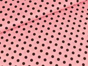 Rosafarbener Baumwollstoff mit braunen Punkten.Die Punkte haben einen Durchmesser von ca. 0,5cm.Material: 100%BaumwolleBreite: 140cmWaschbar bei 30 Grad.