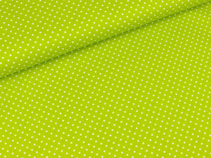 Schöner hellgrüner Baumwollstoff mit kleinen weißen Punkten. Die Punkte haben einen Durchmesser von 2mm. Material: 100%BaumwolleBreite: 150cmÖko-Tex-Standard 100Gewicht:ca. 140 g/m²