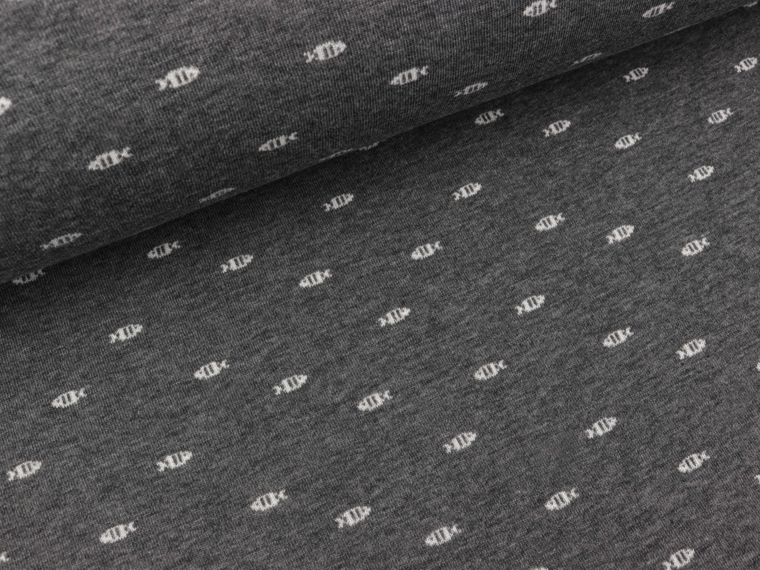 AHOI Bio Doubleface Jersey Go Fishing carbon melange-weiß by Albstoffe